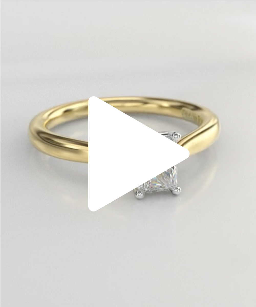 A classic solitaire Engagement Ring, crafted in 18ct Yellow Gold and Platinum with our precise attention to detail. With gentle curves and a simple four-claw setting that showcases the central 0.96ct Radiant Cut Diamond beautifully.