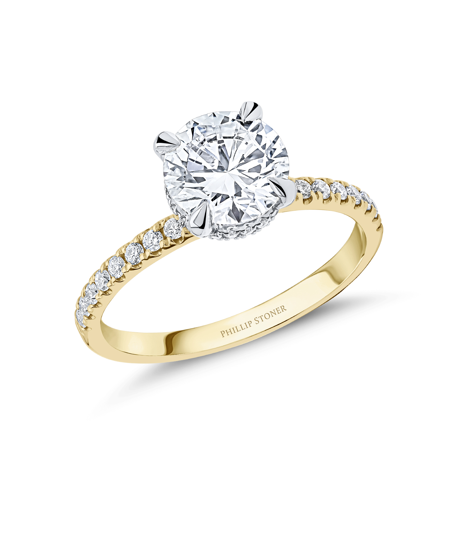 1.50ct Round Brilliant Cut Lab Grown Diamond Solitaire Engagement Ring with Diamond Set Shoulders. Created by Phillip Stoner; Lab Grown Diamond Rings in Leeds & online.